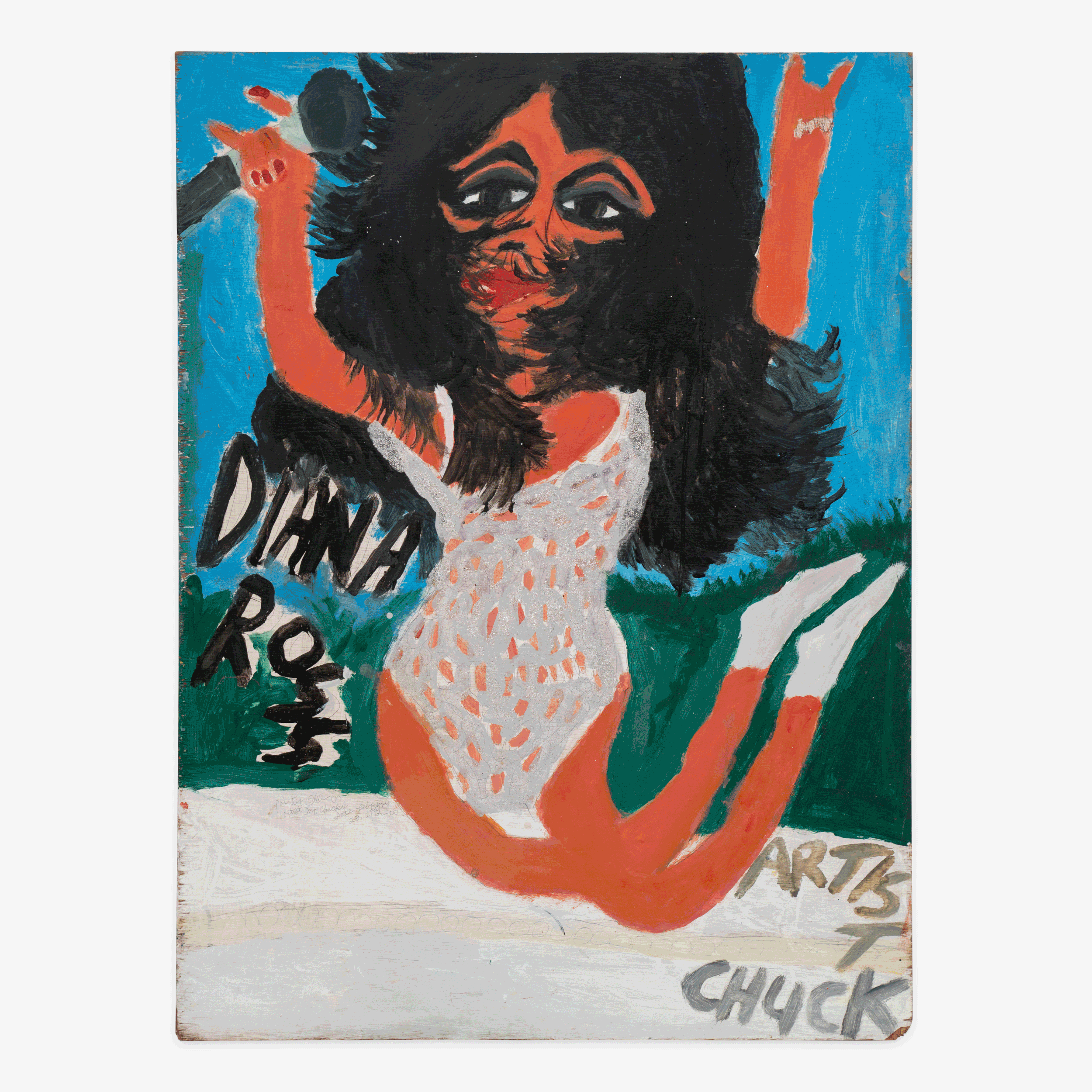 Diana Ross (recto) and Susan Taylor (verso), ca 1990s, acrylic, graphite and glitter on wood, 48 x 36 in.