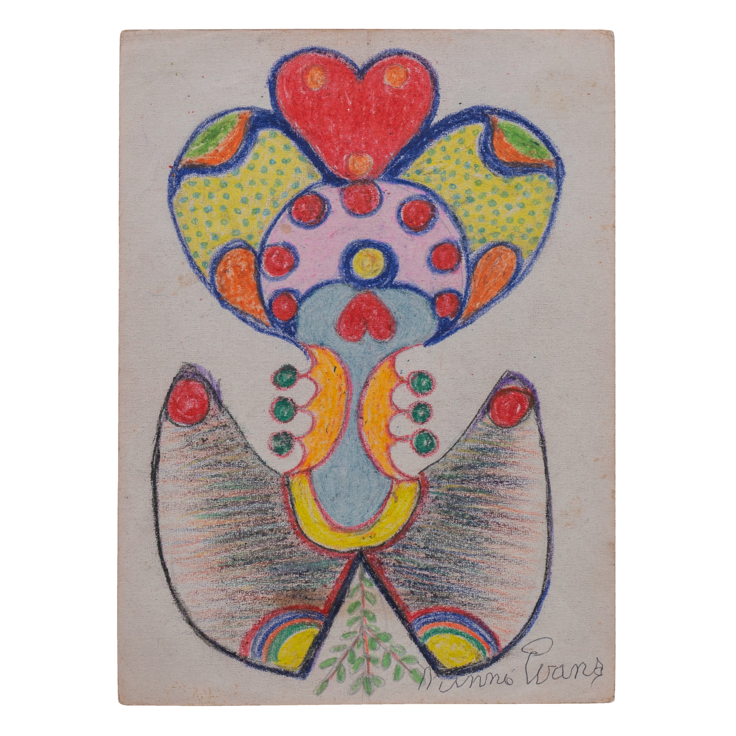 Minnie Evans: Untitled (abstract design with hearts) 9.5 x 7 in