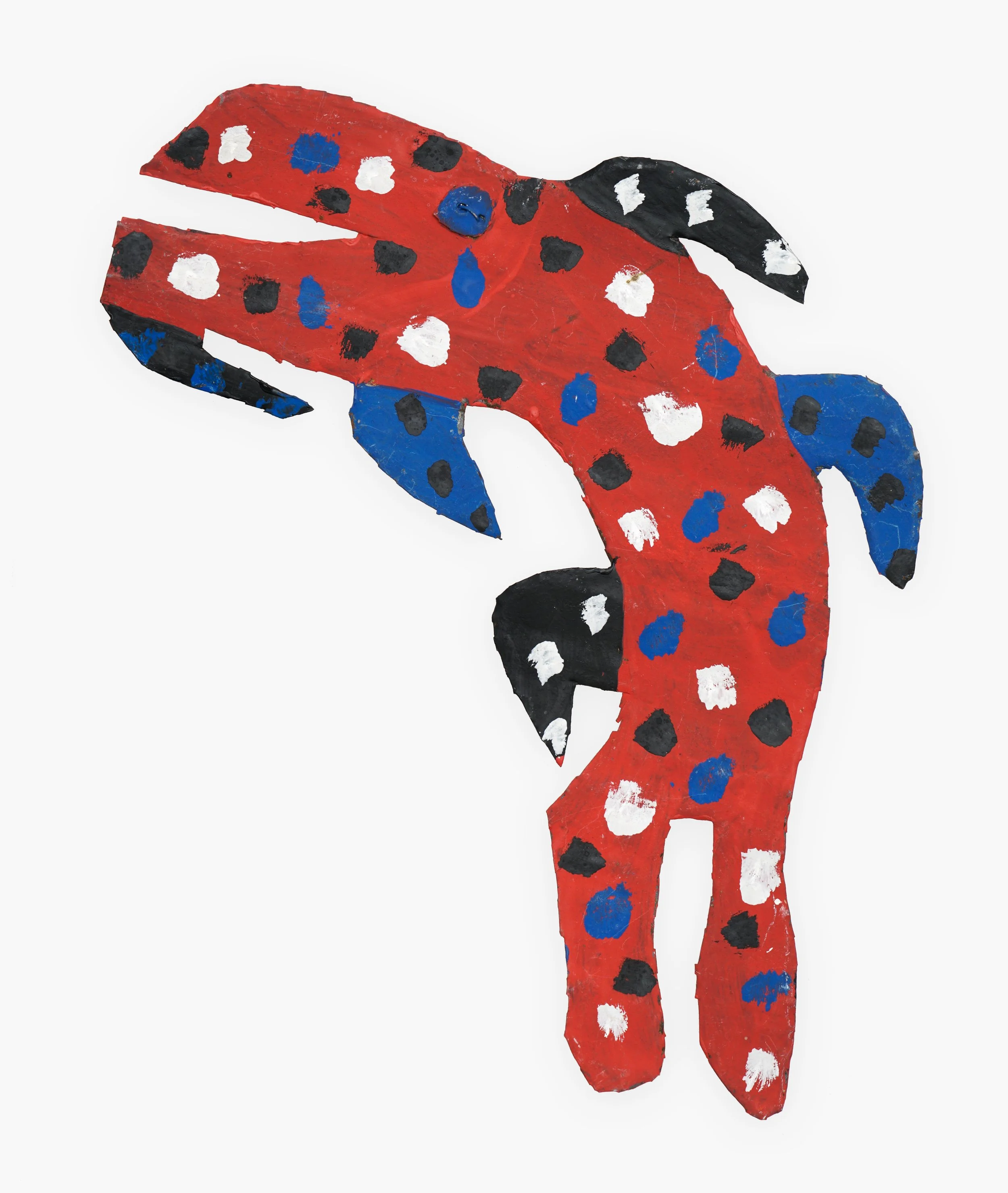 Untitled (red creature), ca 1980s, enamel paint on cut-metal, 12.5 x 17 x 0.75 in.