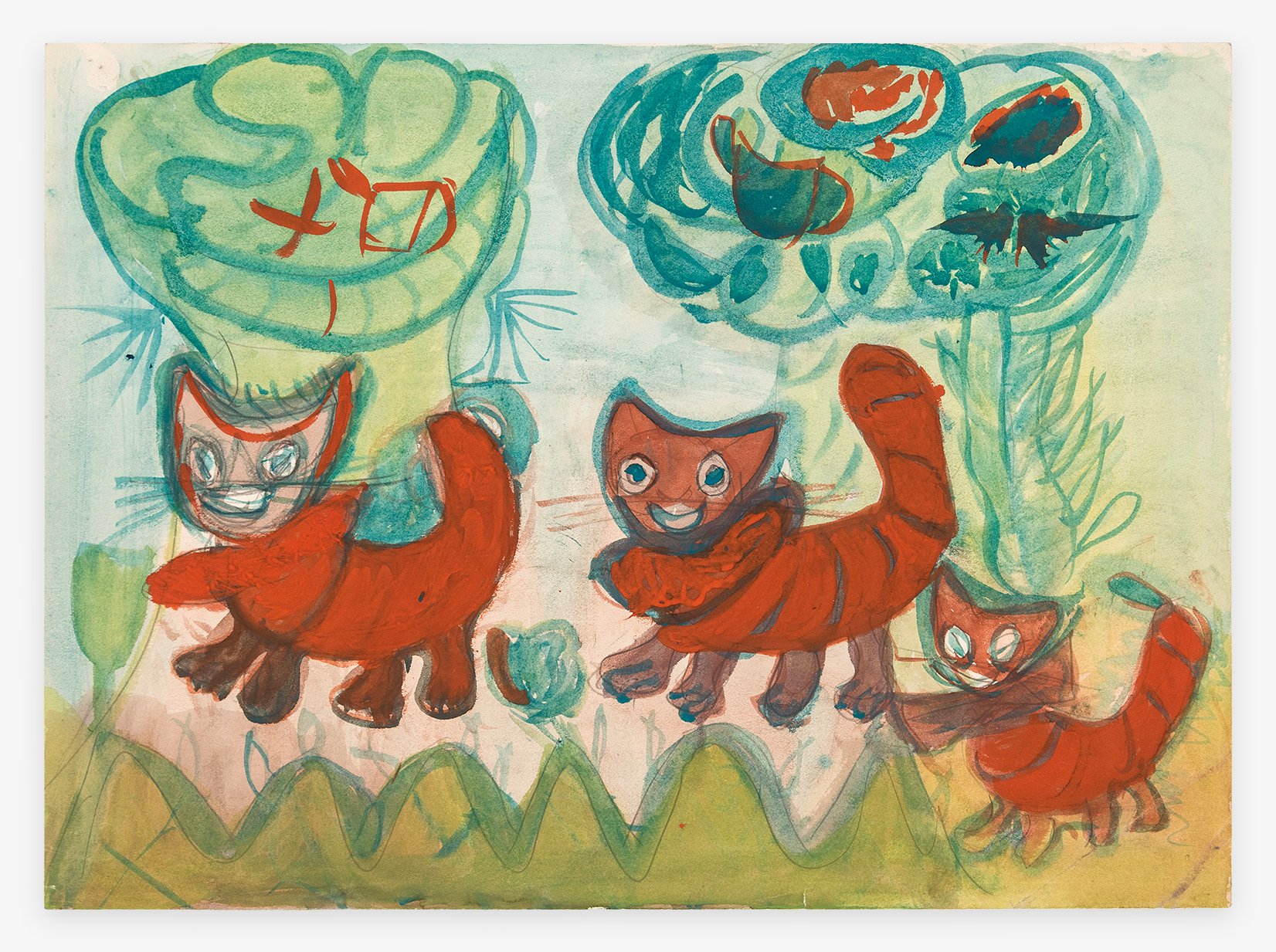 Untitled (three orange cats with trees), 1930