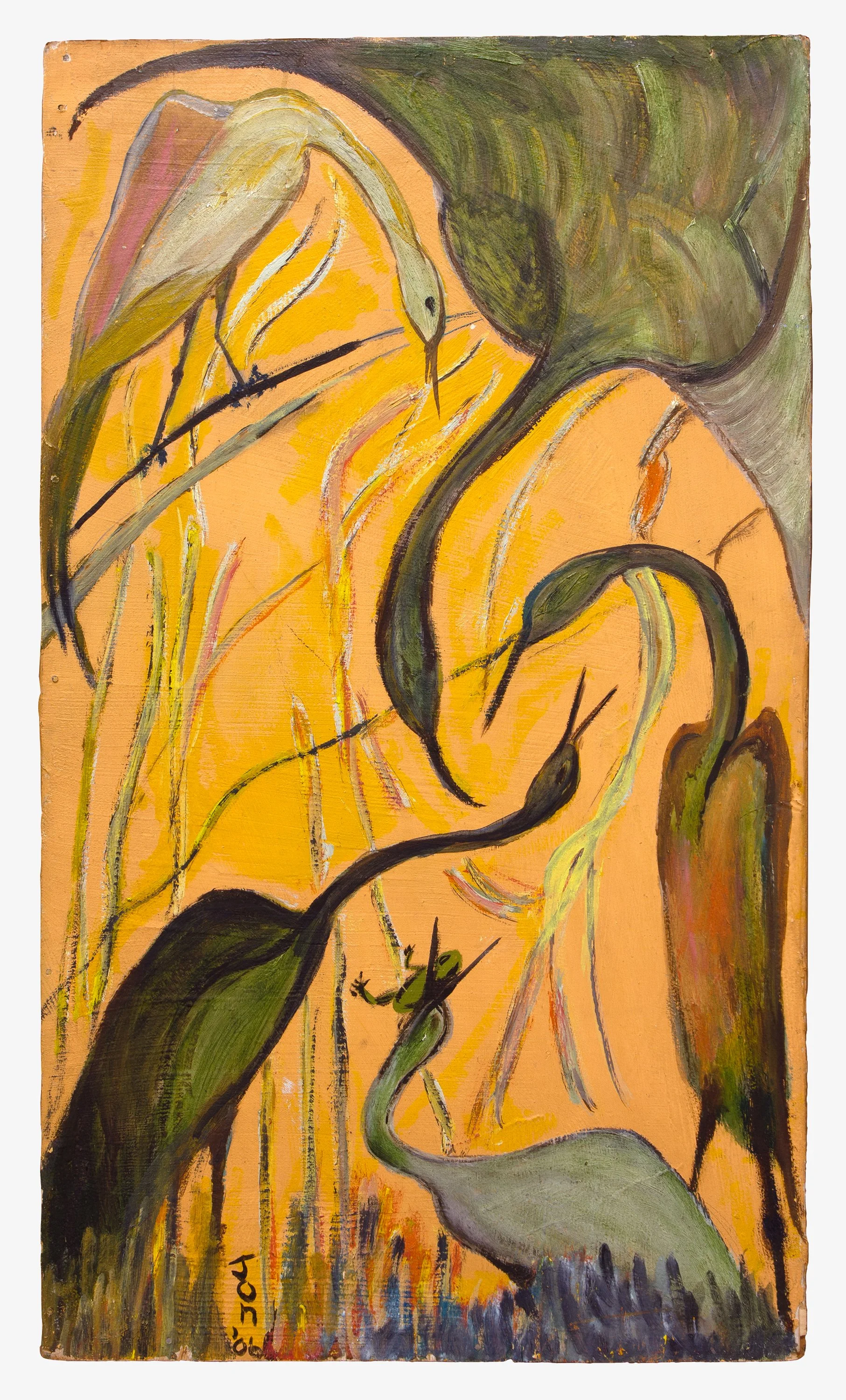 Stilts, 1960, oil on wood, 33.5 x 19.5 in.