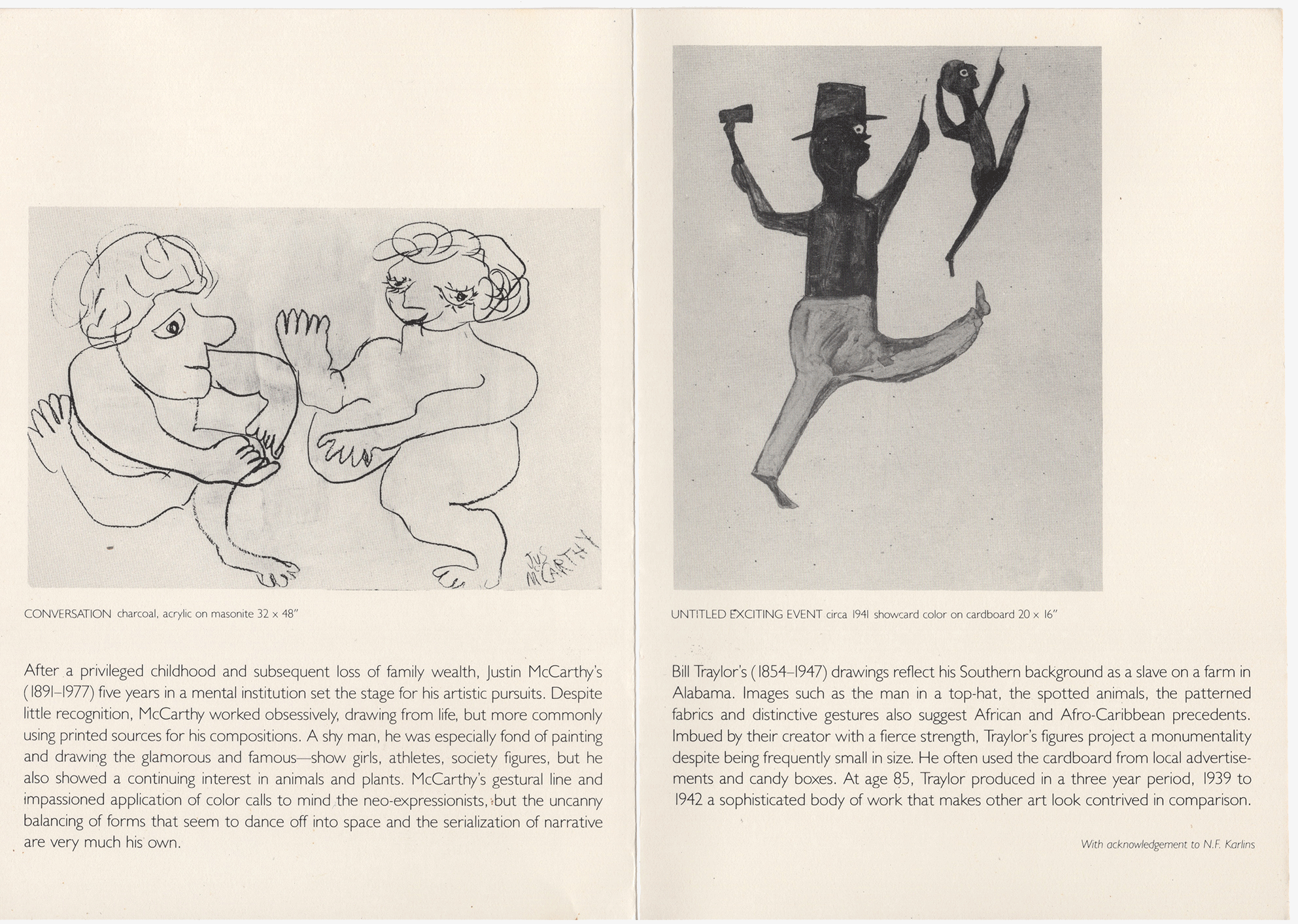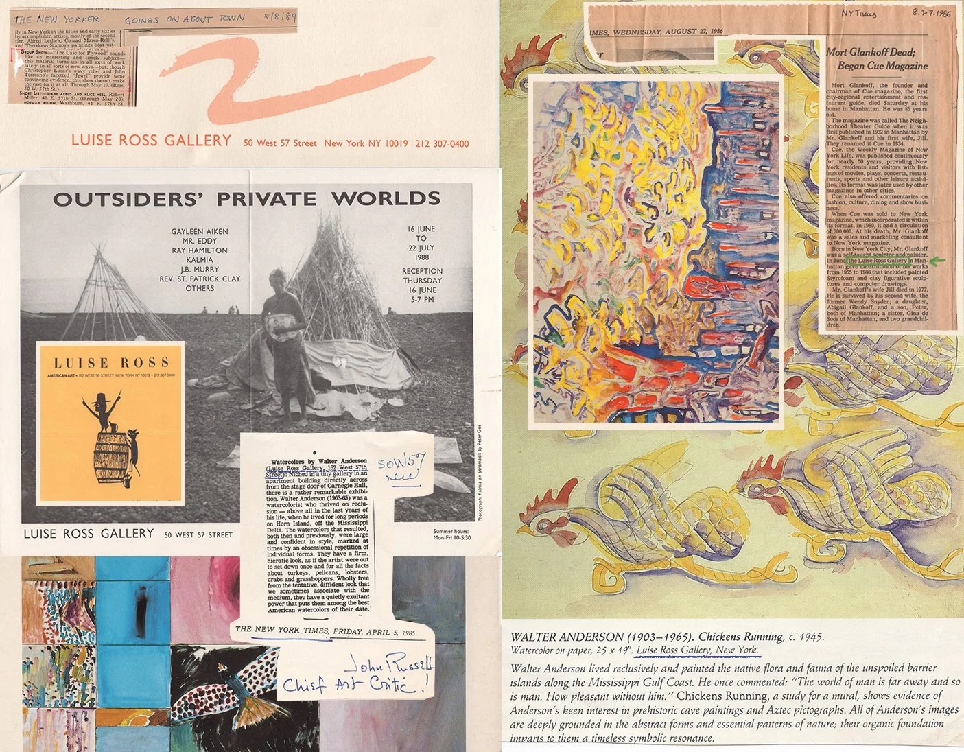 SHRINE presents Cute and Crude for the Outsider Art Fair’s 30th incarnation. The booth is dedicated to pioneering gallerist Luise Ross and will celebrate her legendary gallery program which spanned more than thirty years in New York City. Luise always placed trained and self-taught artists on the same playing field, and her dynamic group shows were as likely to include David Salle as they were to showcase Bill Traylor and Minnie Evans.