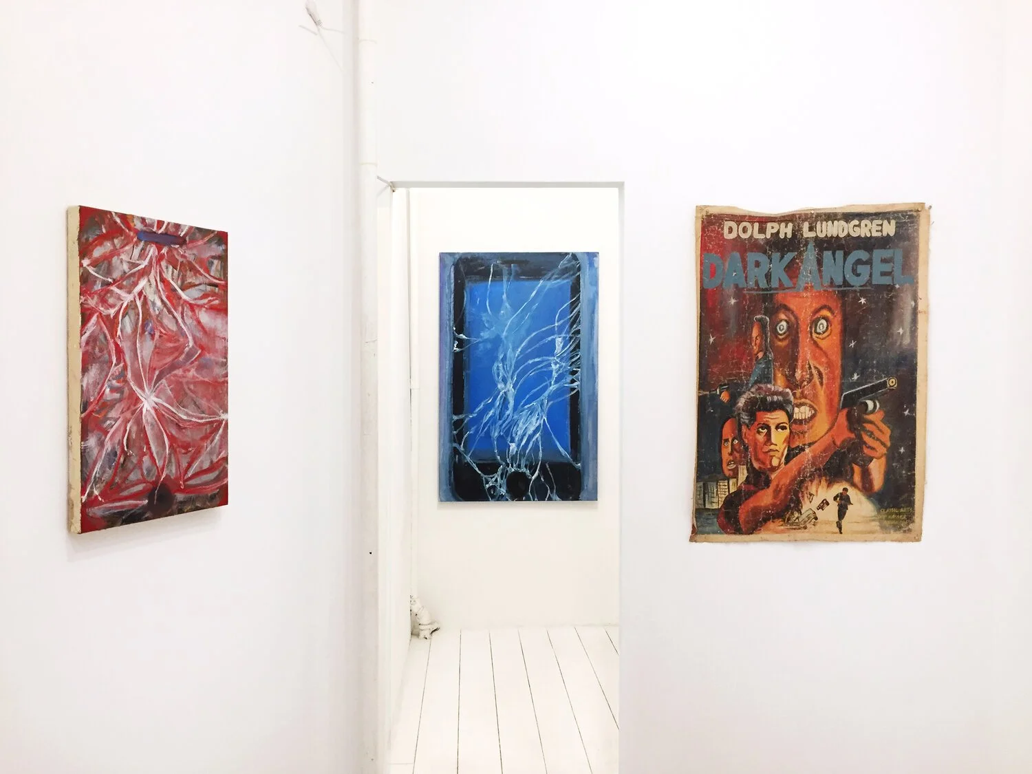 SHRINE is pleased to announce Screenshots, an exhibition of recent oil paintings by Graham Durward depicting cracked iPhones paired with a selection of hand-painted movie posters from Ghana.